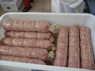 Mastro Dario the ‘Salami Maestro'. When nine years ago Dario Soresi and Bruno Battaini started to experiment the production of salami here in South Africa they soon realized that the real problem was going to be the nature of the very changeable climate with hot days happening in every season, which could be a real cause of salami going bad. The most economical route would have been that of adding poisonous Nitrites, which is widely used, but Mastro Dario chose to make Salami without Nitrite or preserving liquids that give a smoked taste! It's better to have salami that don't appear deep red in color and are made with no poisons! Our Salami matures for months, in special cold rooms wrapped their own natural yeasts getting slowly that special taste! The genuine taste of times gone by....