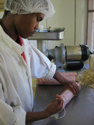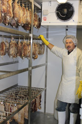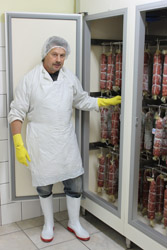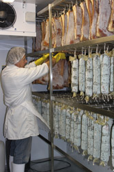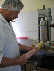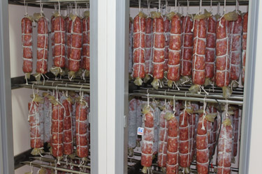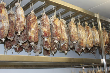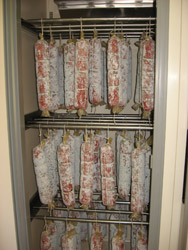 Mastro Dario the ‘Salami Maestro'. When nine years ago Dario Soresi and Bruno Battaini started to experiment the production of salami here in South Africa they soon realized that the real problem was going to be the nature of the very changeable climate with hot days happening in every season, which could be a real cause of salami going bad. The most economical route would have been that of adding poisonous Nitrites, which is widely used, but Mastro Dario chose to make Salami without Nitrite or preserving liquids that give a smoked taste! It's better to have salami that don't appear deep red in color and are made with no poisons! Our Salami matures for months, in special cold rooms wrapped their own natural yeasts getting slowly that special taste! The genuine taste of times gone by....